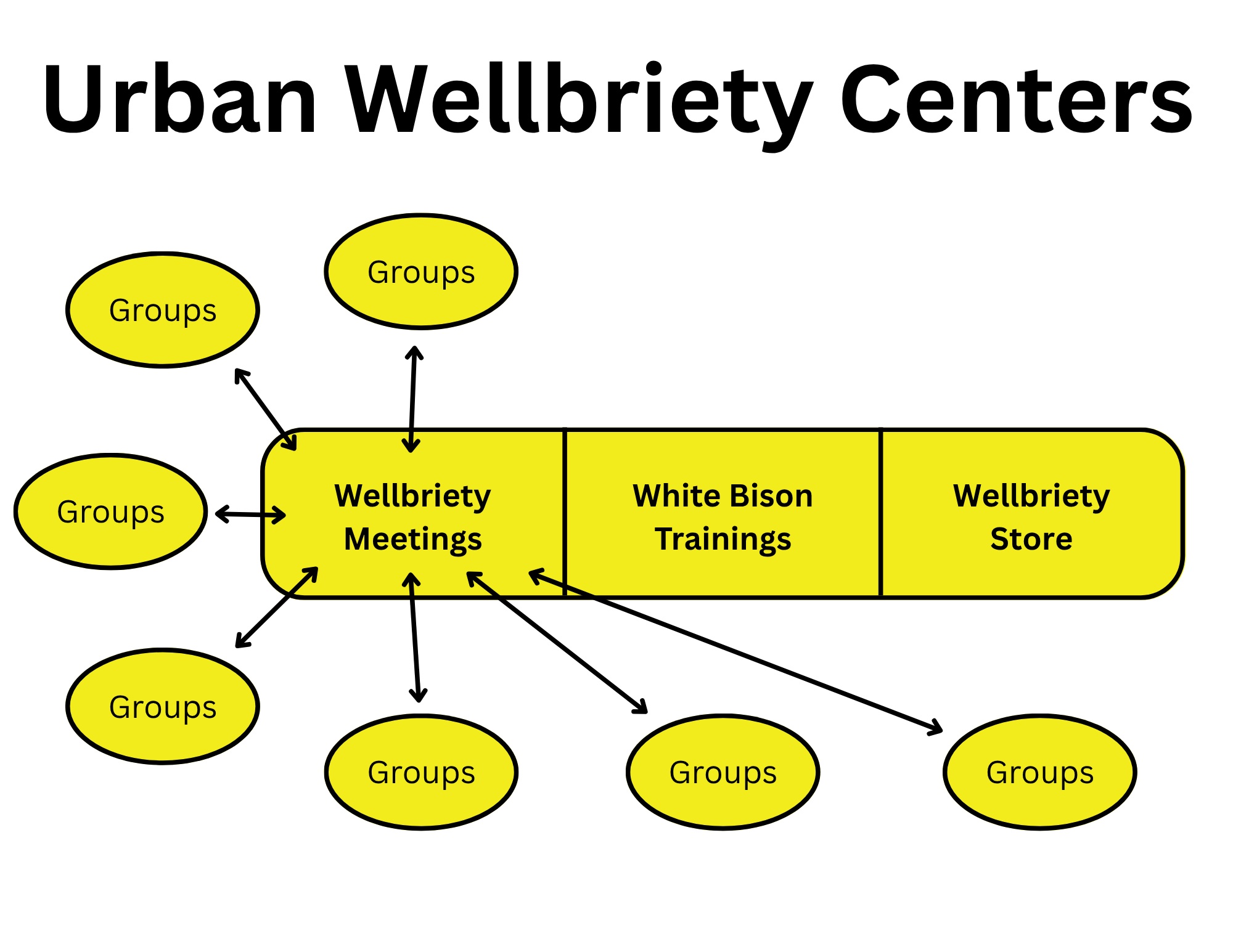 Establish an Urban Wellbriety Center facility where groups could hold meetings, White Bison could provide Wellbriety trainings, and a mini Wellbriety Store could sell Wellbriety merchandise and disseminate Wellbriety information to the local community.